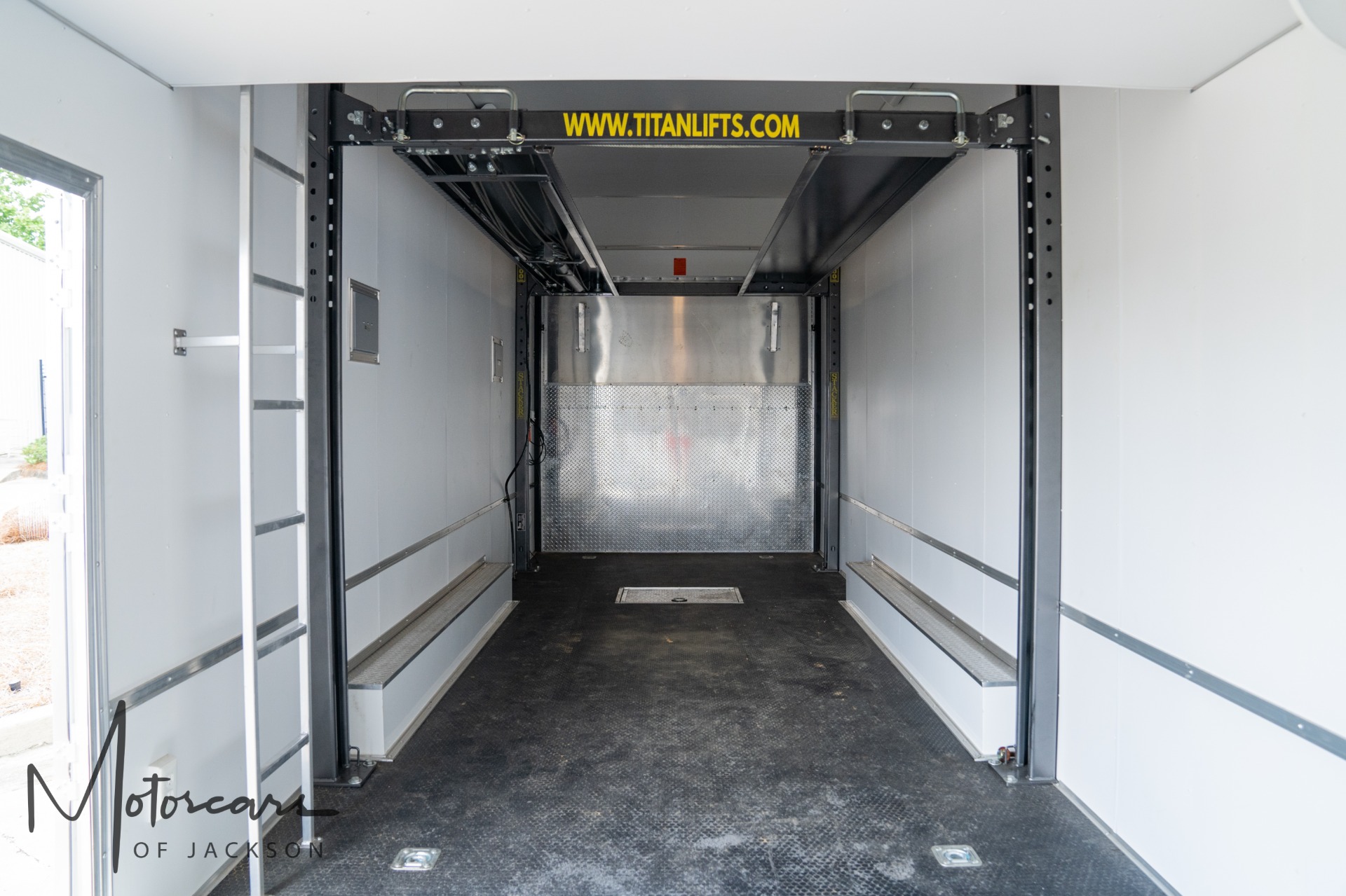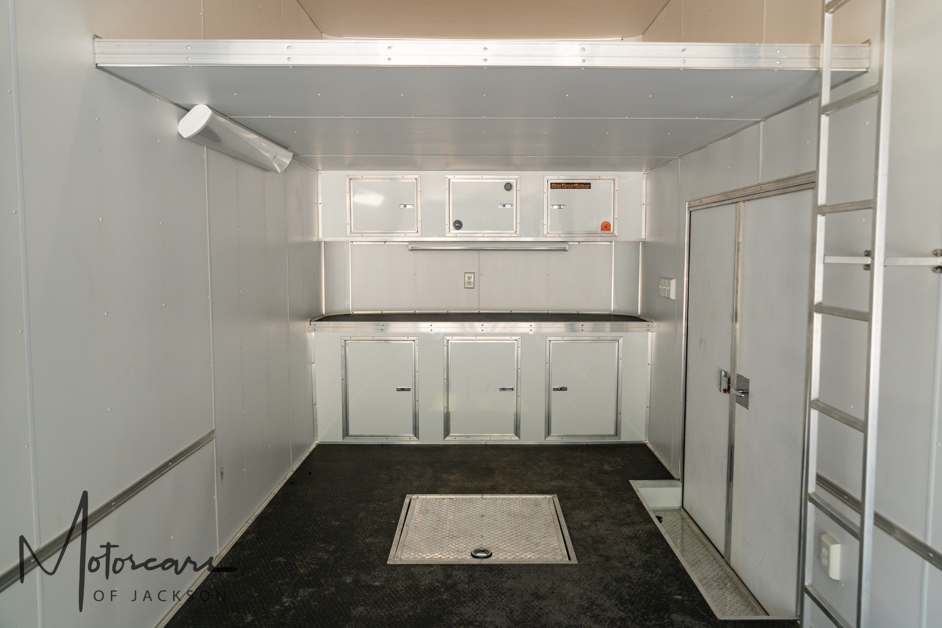 Options: * Axle Upgrade 8 Lug * 60" Triple Tube Tongue * 14' Lift Installed * Maintenance Charger for Lift * 1' of Extra Height * 10' Second Floor with Wood * Ladder to 2nd Floor * Prefab 60" Double Side Door * Black Coin Floor * ATP Ramp & 36" Flap w/ 4" Bumpers * Heavy Duty Ramp Door Spring * Straight UL Cabinets * Spare Tire Compartment in Floor * Expanded 110V Package * Recessed LED Light Switch * Two 4' Fluorescent Lights * Exterior GFI * No Roof Vent * 2x3 Rear Header - 92" Wide Ramp Door * 1' Extra Height on Ramp Door - No Beavertail * Recessed LED Lights on Curbside of Trailer * Recessed LED Light above Ramp Door